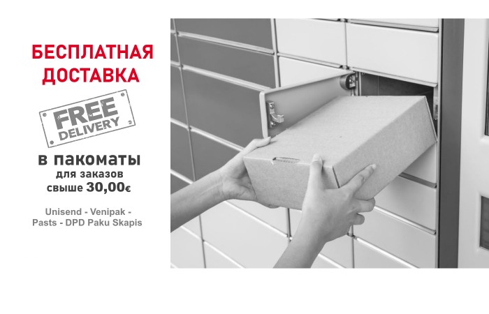БЕСПЛАТНАЯ доставка в пакоматы для заказов свыше 30,00 EUR  (Unisend/Pasts, Venipak, DPD Paku Skapis)